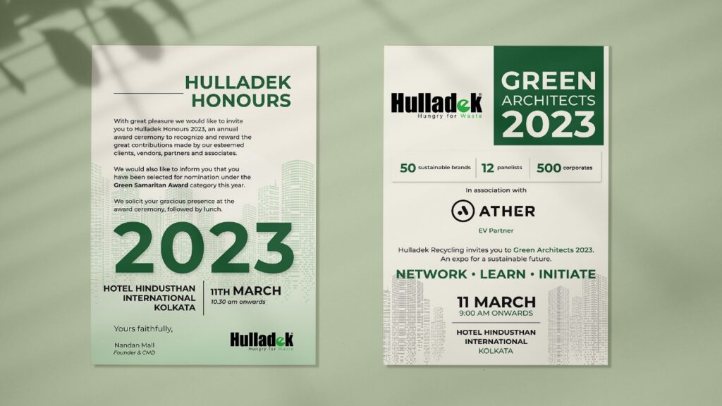 We created the design language for Hulladek’s annual event, hosting over 50 brands & 500 corporates to network and promote sustainable solutions for the future.